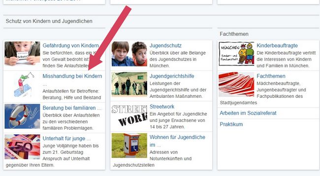 Hierfür setze ich mich an den PC und google via startpage.com nach Jugendamt München und gelange schließlich auf die Startseite des Jugendamtes. Dort sehe ich in einem Kasten den Link „Gefährdung von Kindern“.