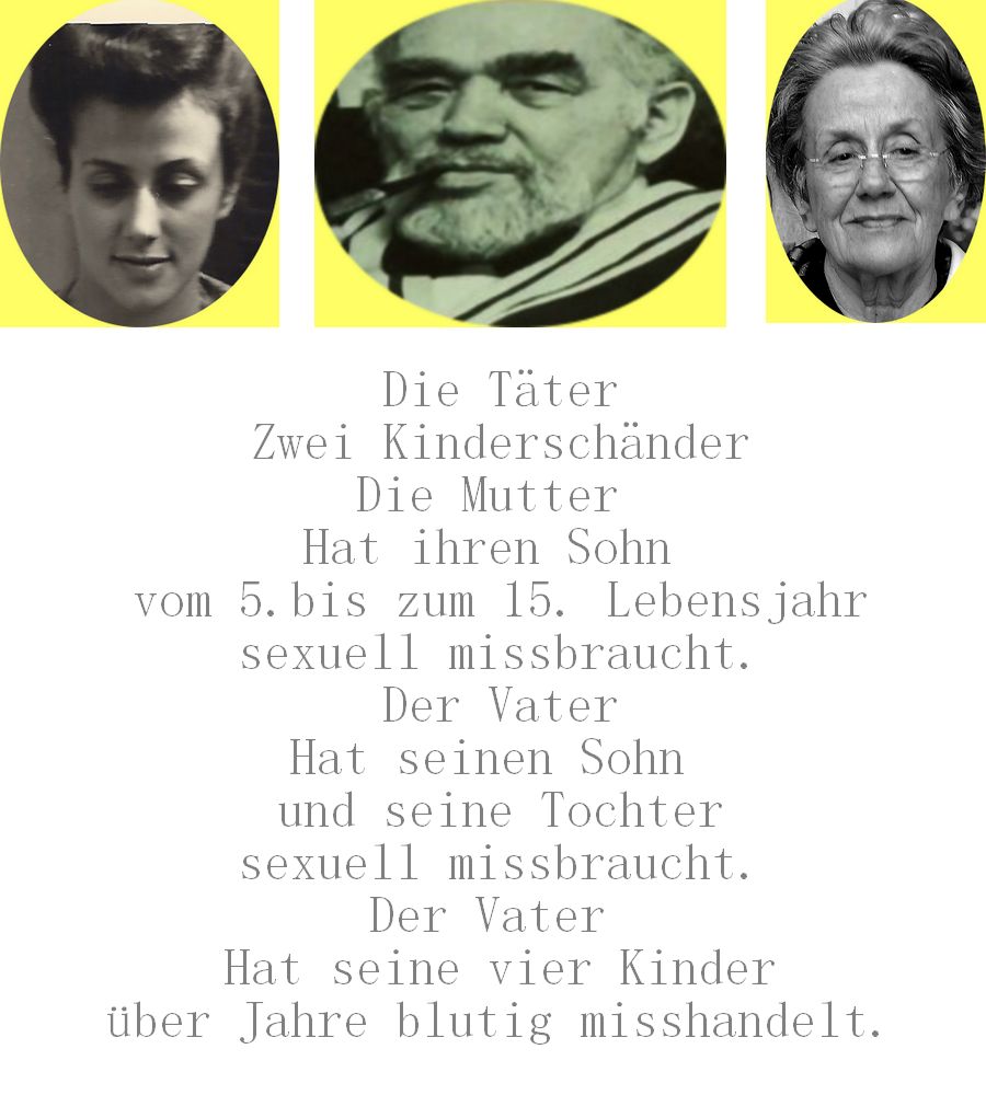 Wie schauen Kinderschänder aus? Sicher nicht wie der böse Wolf im Rotkäppchen oder die böse Hexe in Hänsel und Gretel. Der eine missbrauchte Mädchen, die andere Buben. Jedenfalls sind die verwendeten Metaphern im Märchen unübersehbar. Doch die Wirklichkeit ist anders. Kinderschänder sind keine erkennbaren Monster, sondern ganz normale Leute, wie du und ich; andernfalls müssten wir Überlebende nach den mendelschen Regeln ebenfalls wie Monster aussehen.