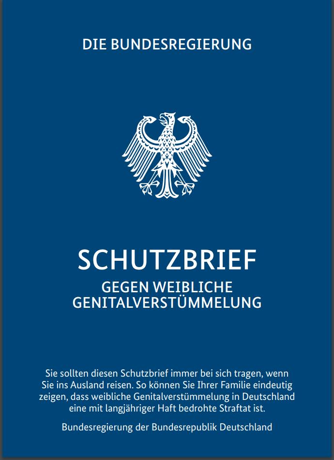 Im Schutzbrief werden auch die Folgen von Genitalverstümmelung explizit erwähnt, wobei zwei davon ebenso Männer betreffen.